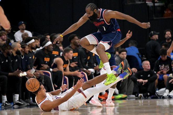 首节开局,琼斯上来先冲击上篮得分,但太阳回敬一波9-2的小高潮,哈登2+1止血。小卡也开始接管进攻,快船回敬一波小高潮14-11反超3分。但狄龙和阿伦连续投进两记三分,太阳一波8-0打停快船。回到比赛,哈登助攻小琼斯三分止血,然后自己造犯规罚球。布克打巴图姆3+1,裁判还升级了一级恶意犯规。但哈登开始发力,2+1、撤步三分、接球三分,一人连砍9分追平。保罗换下登哥,邓恩罚球反超。首节结束快船34-33太阳。