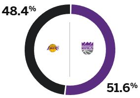 其中,湖人胜率为48.4%,国王胜率为51.6%。